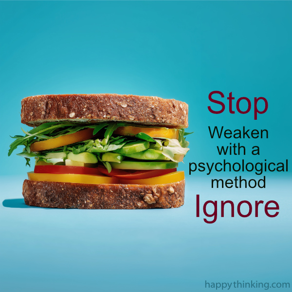 Drawing on psychology and my own experimentation, I have created a system to help one use psychological methods effectively. I find it a powerful way to deal with negative thoughts and use it often, and I am very happy to share it with you. The system, which has three steps, I call: “stop-weaken-ignore”. Right now, of course, the three words will mean little to you. Do not worry, I will explain them clearly.